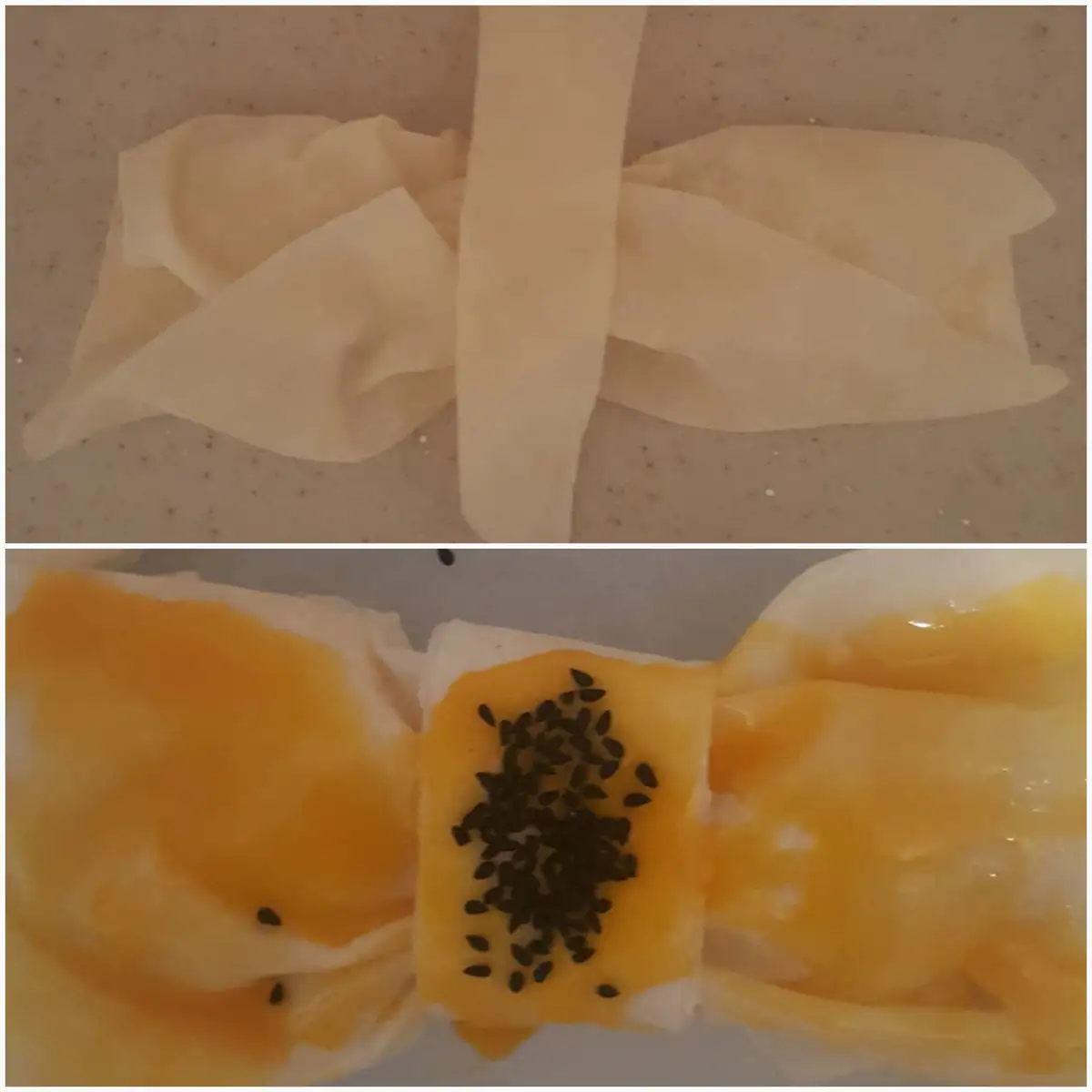 Kapatiyoruz ve kalan yufkalari serit haline getirip ortasina sariyoruz..