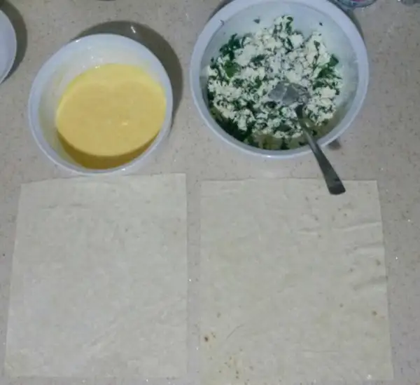 oncelikle bir tane yufkayı alıp resimdeki gibi katlıyoruz