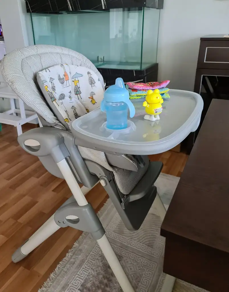 Yedi farklı pozisyonda yükseklik ayarı yapılabilir yemek masası seviyesinde kullanılabilir.