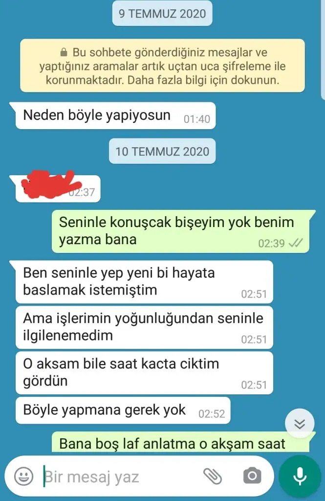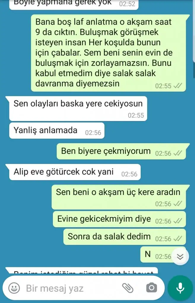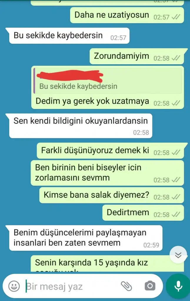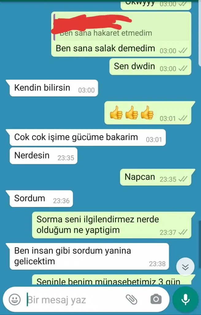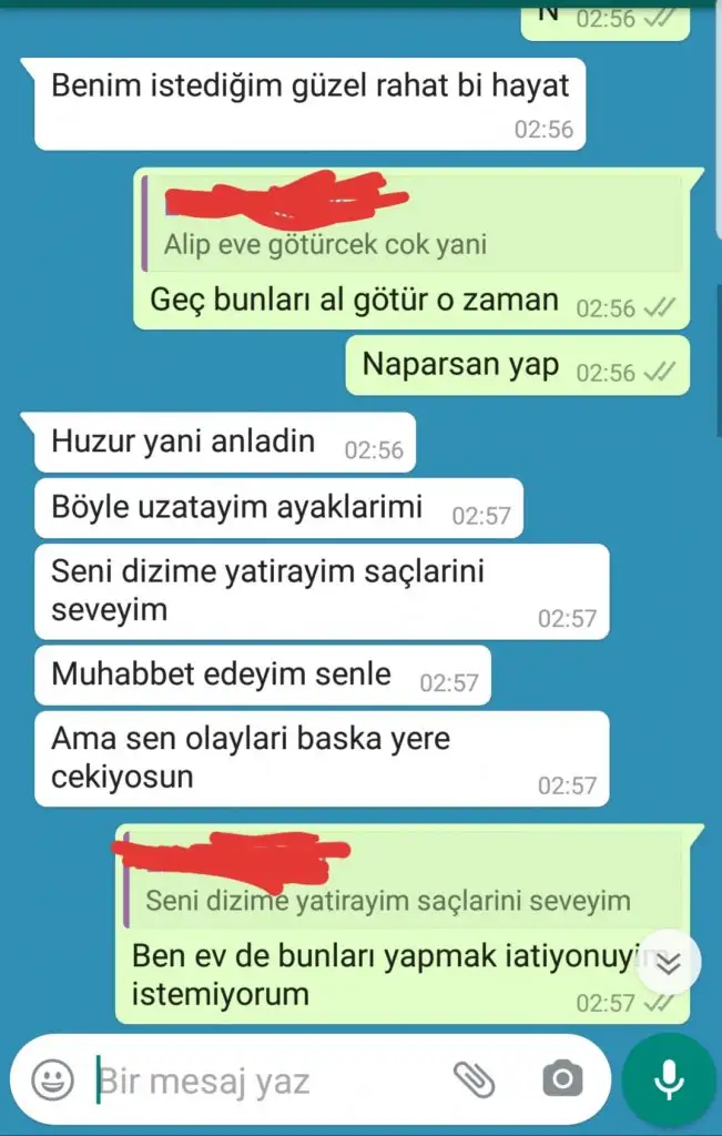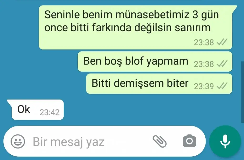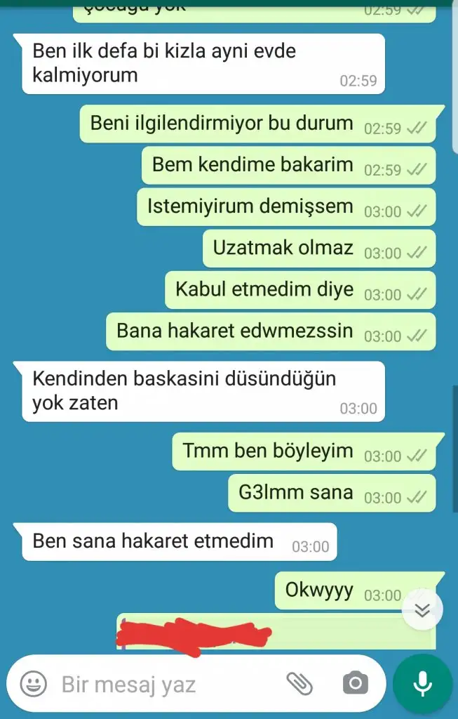 Çok acınası değil mi? Söyle yazmış yeni görüyorum. 'Sen yaptıklarının bedelini ödüyorsun, ödeyeceksin de. Gebermen dileğimle.' yazmış. Ne kadar acınası. Birinden intikam almaya çalışmak hem de bunun için başka birisini kullanmak ne kadar saçma. Şu yazdığını gördüm ya nasıl rahatladım. Bundan...www.kadinlarkulubu.com