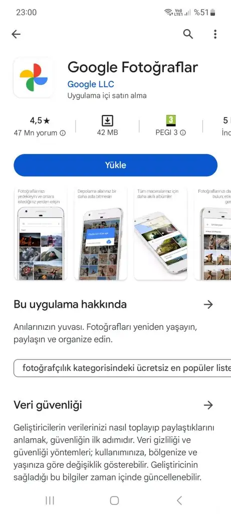 Fotograflar diye bi uygulama var kaydetmeyi acarsaniz o uygulama hesabiniza kaydediyor benim ilk androidimden beri fotograflar duruyor ustelik uygulamayi siliyorum mesela ayni mail hesabimla geri girdigimde ayni fotoğraflar orda duruyo oluyor telefonumda yer kaplamasin diye siliyorum😀