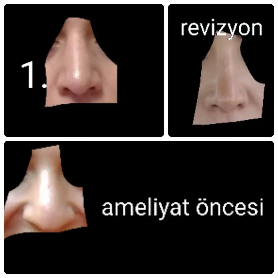 Bende kırılma da yapıldıHangisi önce hangisi sonra anlayamadim,şayet birinci foto yani burun ucu şiş ve düşük olan ilk resimse benim revizyondan onceki halime cok ama cok fazla benziyor..Burunda kırma işlemi yaptirmadigim icin sadece torpuleme ve burun ucu kaldirma yaptirdigim icin şu attığınız birinci fotodaki görüntünün birebir aynisi olusmustubaska doktora gidemeyecegim icin ve burnumun icini baska doktordan cok kendisi bilecegi icin bir yil sonrasinda yine ayni doktoruma ÜCRET KARŞILIĞI revizyon oldum..şu an yine tam istedigim gibi degil bazı problemler var ama cok sukur önceki hali gecti en azindan abes duran iğrenc goruntuden kurtuldum..insallah siz de basarili bi doktora ameliyat olup kurtulursunuz