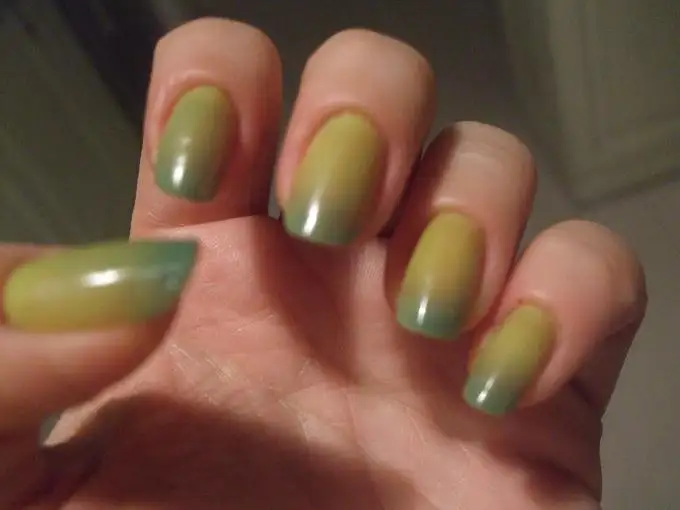 Bu Claire's Mood isimli ojeleri çok istemiştim, Ebay'de bile zor buldum. Tahminimce yakında Türkiye'ye gelir ama henüz yok. Bu ojeler soğuk ve sıcağa göre renk değiştiriyorlar. Bu nedenle oje kuruduktan sonra oda ısısında tırnağın sıcak olan kısmı yani tenin üstündeki kısmı ile beyaz olan uçları farklı renkte oluyor, uzun tırnakta renkli french gibi duruyor. Ojeli tırnakları sıcak suyun altına tutunca birden rengi açılıp fosforlu bir yeşil oluyor, hemen ardından soğuk suyla temas ettirince koyu bir elma yeşiline dönüyor. Hemen hemen her rengi var ama ben en çok yeşili sevdim bu yüzden ilk bunu sürdüm. Gözlerimi tırnaklarımdan alamıyorum, bir de ikide bir suyun altına tutup oynuyorum, çocuk gibi oldum! :)) Buyrun bu da tırnaklarımın fotoğrafı. (Baş parmağımdaki sürüm hatası değil, nail dangle (tırnak küpesi) takıyorum bazen, delik onun için.