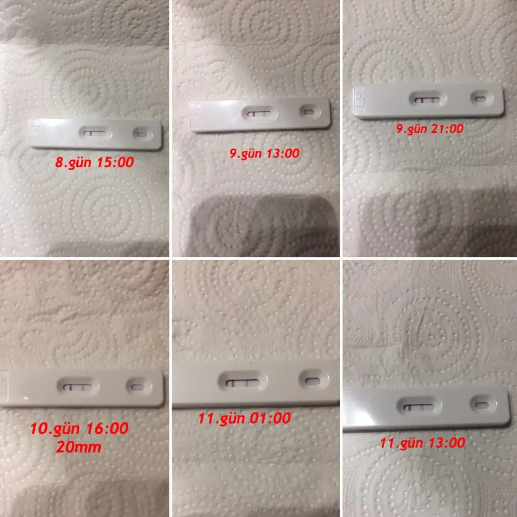 Döngünün 6. günü gittim ben doktora 14mm yumurta var dedi, dün de 10. Günde 20 mm olmuştu, bnm erken oluşup çatlıyo genelde ama bu çatladı mı noldu anlayamadım hepsi birbirine çok yakın9.gün sanki yumurtlama olmuş gibi canım bugun 11.gün de t çizgisi siliklenmiş çatlamış gibi değerlendir mutlaka