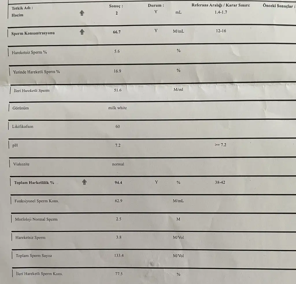 Sperm sonucu 5 günlük diyet sonucu.