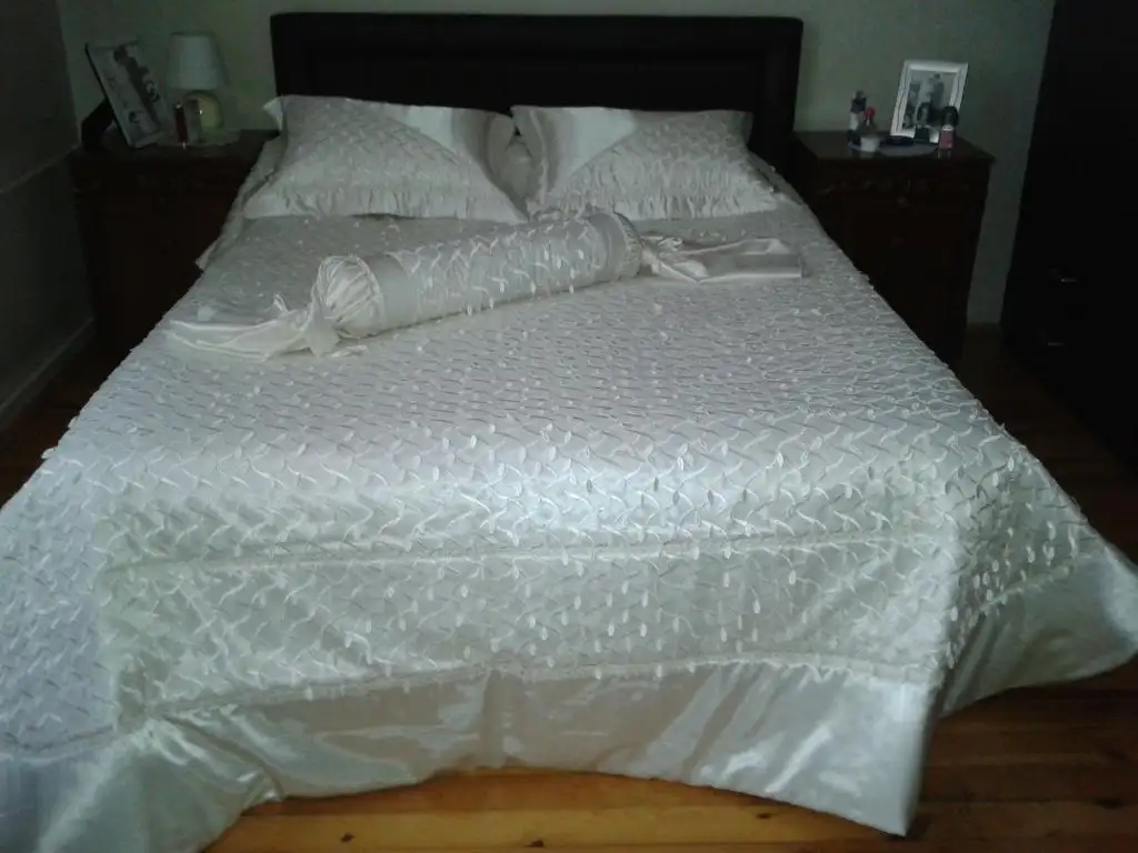 kızlar bu da kendim dizayn ederek diktirdiğim kokoş yatak örtüm 400tlye diktirdim yastıklarının doldurulması da dahil
