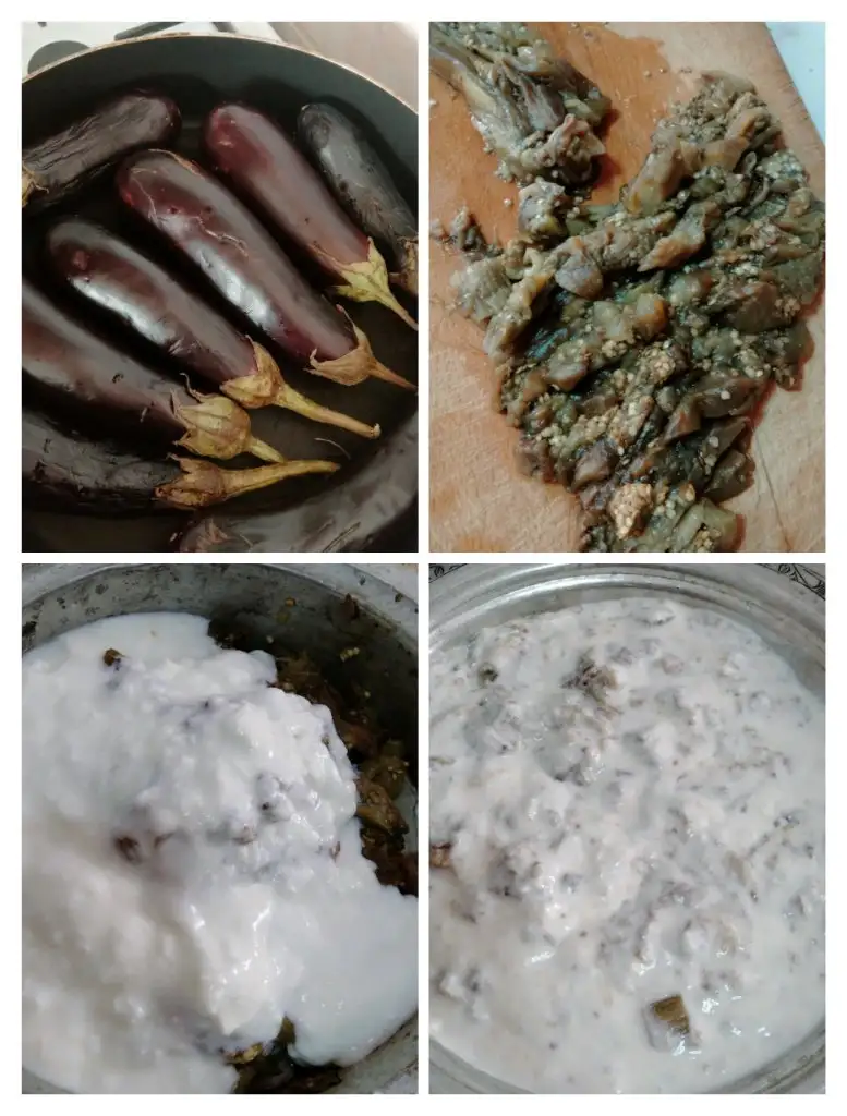 Közlenen patlıcanları soyup doğrayalım. Üzerine yoğurt ve tuz ekleyip harmanlıyoruz. Dilerseniz sarımsak ekleyebilirsiniz.