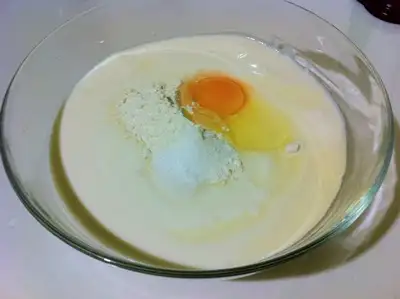 Genis bir kasede yogurt+ yumurta+ un ve tuzu 2 dakika boyunca mikserden geçirin