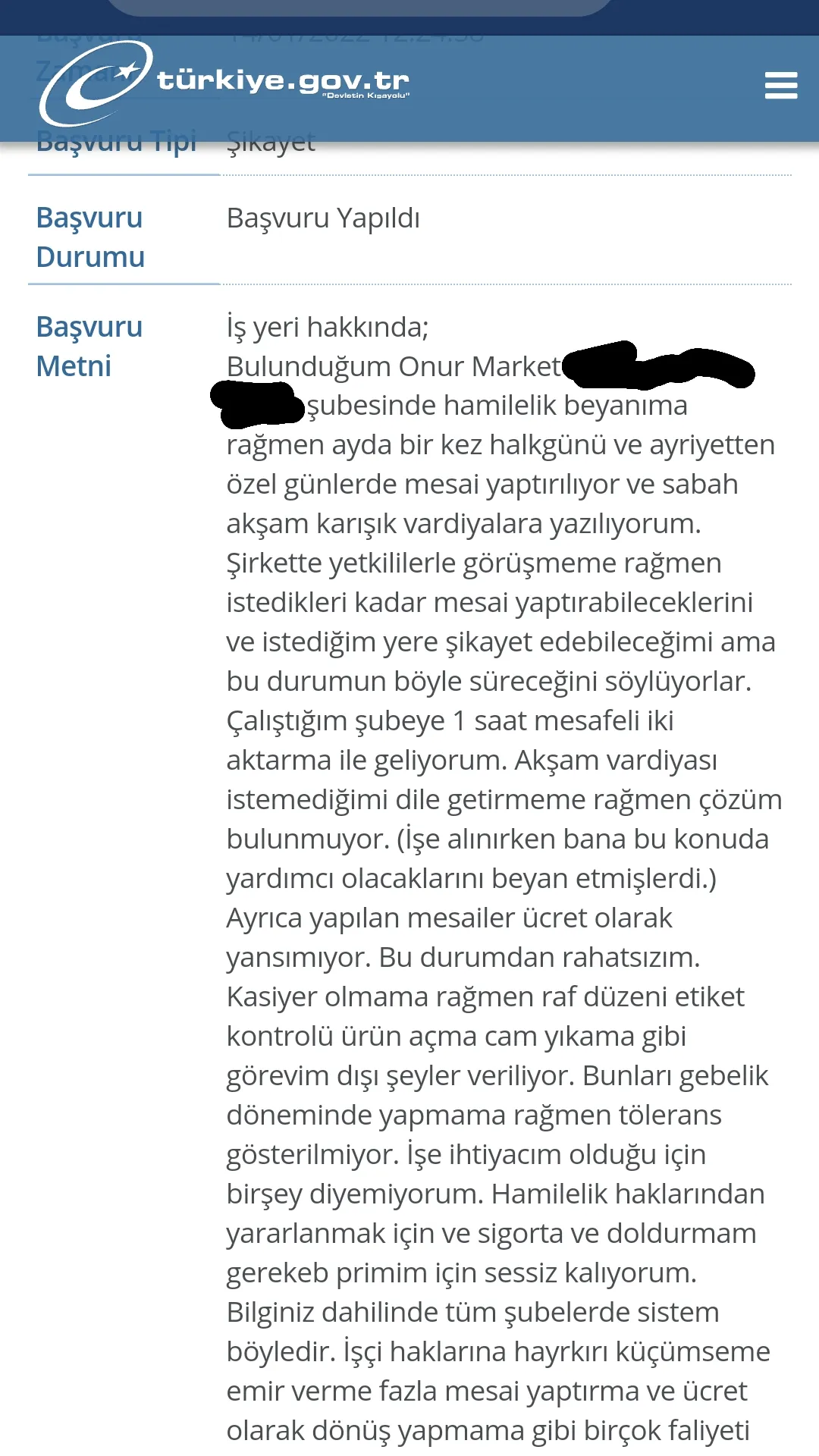 Birde kanunen hamilelere mesai yaptirmak yasakken nasil yaptiriyorlar anlayamadimVardiyaları istedikleri gibi düzenleme hakkına sahiplerdir muhtemelen. Ancak mesai ücretlerini ödememeleri hususunda geri dönüş yapacaklardır. Sikayette bulunan kurum sorumlusunu arayıp hakkınızda böyle böyle bir şikayet var gelin savunmanızı yapın diyorlar kişi gidip savunmasını yapıyor sonra süreç işliyor biraz uzun bi süreç yalnız.