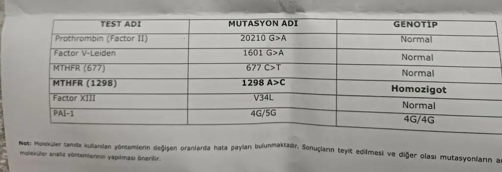 Evet benim mthfrler heterozigottu ama pai homozigot. O yüzden halen oksapar iğne kullanıyorum o beta pozitif olan günden beri. Siz de başlayacaksınız muhtemelen , bir de folik asit alımını aksatmayın mthfr mutasyonu içinTeşekkür ederimpıhtılasmanız ne derecedeydi benmde mthfr homozigot çıktı iki tanesi de kalp atışı oluşmadı düşük kürtaj oldu. Bir de kimyasalinizın sebebi kan pıhtılaşmasımıış