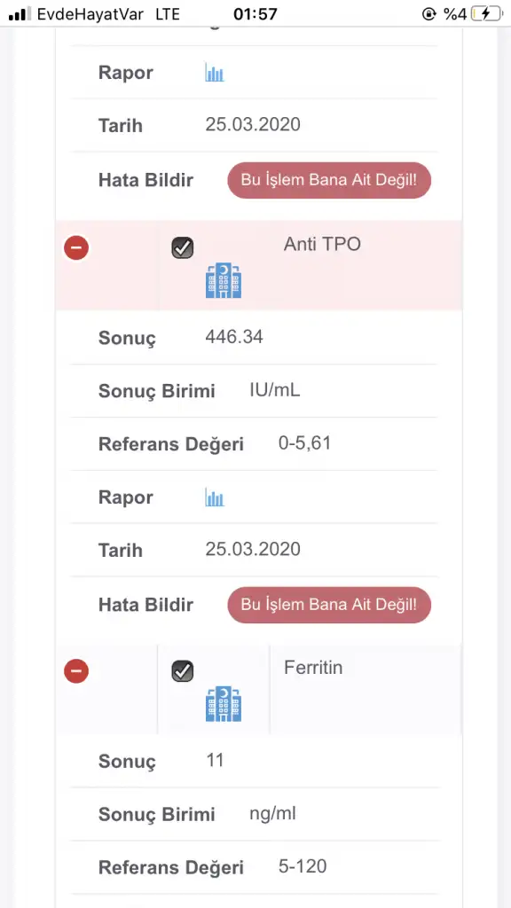 Sonuçları attımSık takip gerektiriyor zaten. Ayda bir tsh ölçtürüp ilaç dozu düzenlemek gerek...