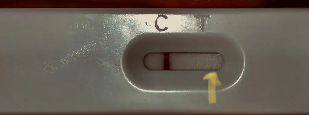 Merhabalar, idrar testini yapar yapmaz böyle bir çizgi çıktı. Flash patladığı için renkle oynadım biraz. Aşırı göğüs hassasiyetim var. Bir de reglım düzensiz. Yani yumurtladığım tarihi bilmiyorum. Böyle bir çizginin pozitif olma ihtimali var mı?