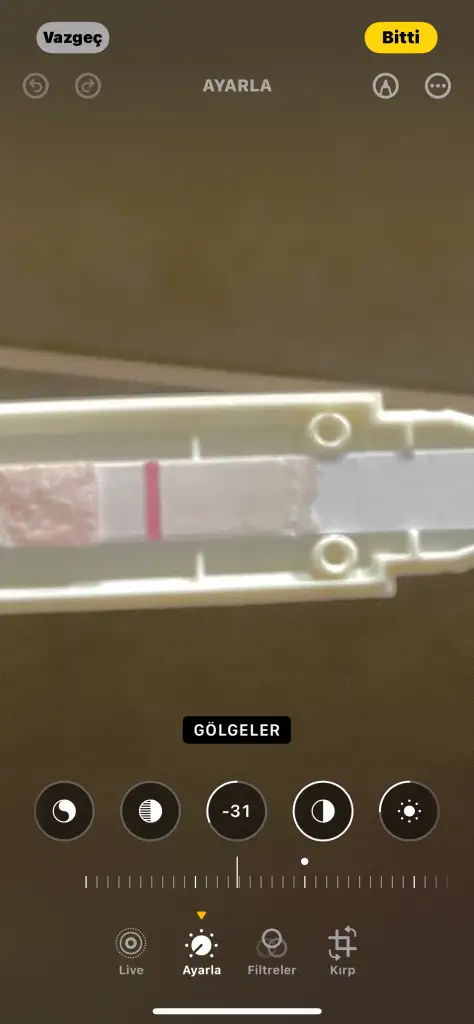 Hanımlar test yaptım 5 inde adet olmam lazımdı 10unda oldum 2 gün sürdü. Şüphelendim. 4 gün sonra bi test yaptım negatifti. 9 gün geçti tekrar yaptım. Bi ara çizgi görür gibi oldum ama bu negatif mi ? Kenarda ki kırmızı çizgiye takılmayın o test penceresinden gözünmüyor. Hatta o çizgi yüzünden tekrar et demişti birisi o yüzden tekrar ettim. Bi önceki testte de çıkmıştı o çizgi.