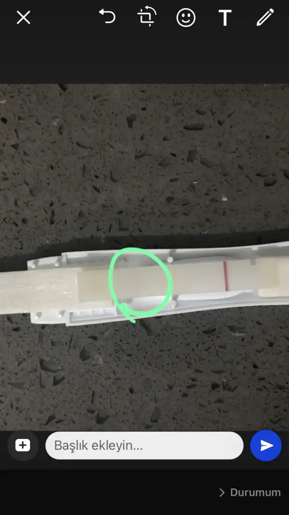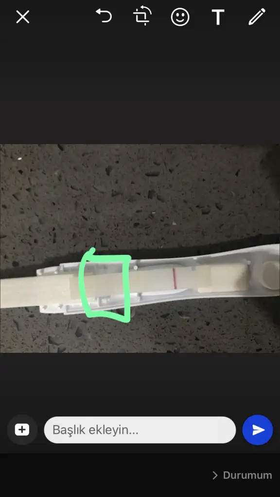 Çok dikkatli bakınca bellli belirsiz bir çizgi var ama bence bekleyin tekrar yapın sabah ilk idrarınızla bir gün sonra yaparsanız varsa daha net görünebilirMerhaba bunu yarım saat önce yaptım en son adet tarihim 19 Eylül 29 ekimde adet tarihim 7 gün var pko var şu sıralar kasık ağrılarım var sol genellikle göğüslerime sızı giriyor bulantı baş ağrısı duygu değişimi gibi şeyler yaşıyorum test yaptım erken gebelik sizce ne anlama geliyor ?
