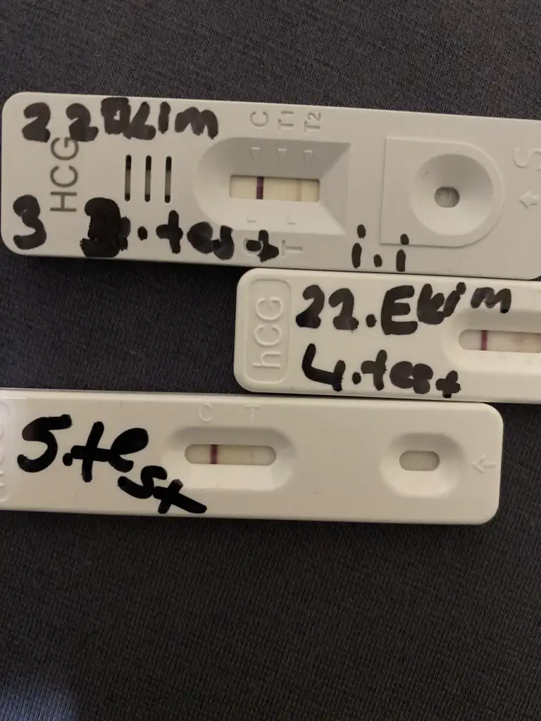 Evet net görünüyor. İlk idrar ile yaptığım test değişmedi benim bir de bu akşam yaptığım onlar aynı duruyor Allahım sağlıklı haberler nasip etsin hepimize çok heyecanlıyım.Ben ilk idrarla yaptım evet ilk dakikalarda aynı seninki gibi silik çıkto sonra aynı seninki gibi incecik çizgi kaldı 3 numarada olan gibi evet evet somradan silikleşiyo rengi değişiyor kurdukca başka şekil alıyor normal o ona takılma bak bu ilk gebeliğimin testleri bunlar da değişmişti. Eki Görüntüle 3149591