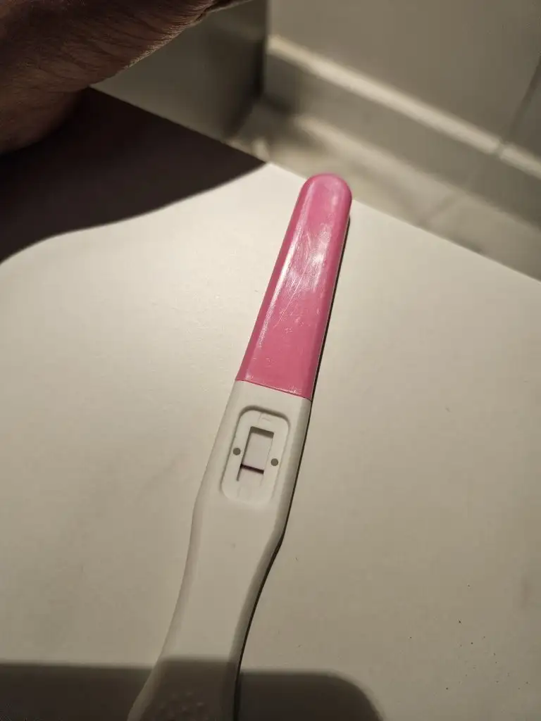 Tatildeyken ilk defa gördüm almıştım yalanci pozitif çıkarmıştı hatta seninkinden daha koyuydu benimki koydum hatta fotosunu başka marka dene canım (masanin ustundeki test 2 dk sonra cektigimdi elimde test 10 dk sonra çektiğimdi)Hanımlar pkosluyum klomen kullandım günde 1 kez . Adetin 18.günü gittiğimde 5 yumurta vardı ilişkiyi 10 gün boyunca yasakladılar ama ben uymadım gün aşırı değerlendirdim yumurtaların 2-3 tanesi çatlamak üzereydi . Bugün 28.günüm 2-3 gündür de bel ve kaşık ağrısı tutuyor geçiyordu . Yumurtlamadan sonra adete 1 hafta kala göğüs acısı geçerdi bu sefer geçmedi . Kendimi belirtilere göre kurmak istemiyorum içimden inatla test yapmak geliyor hamileymişim gibi . Öyle olmak istediğim için öyle hissediyorumdur dedim negatif görmek için test yaptım o da şansıma silik çizgi çıktı . Nimo marka erken gebelik testi kullanan oldu mu fotoyu koyucam çizgi hemen çıktı