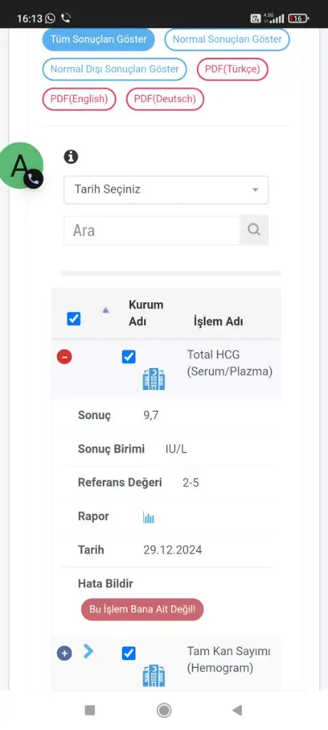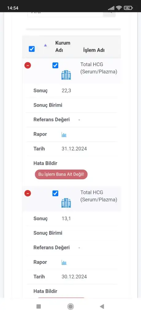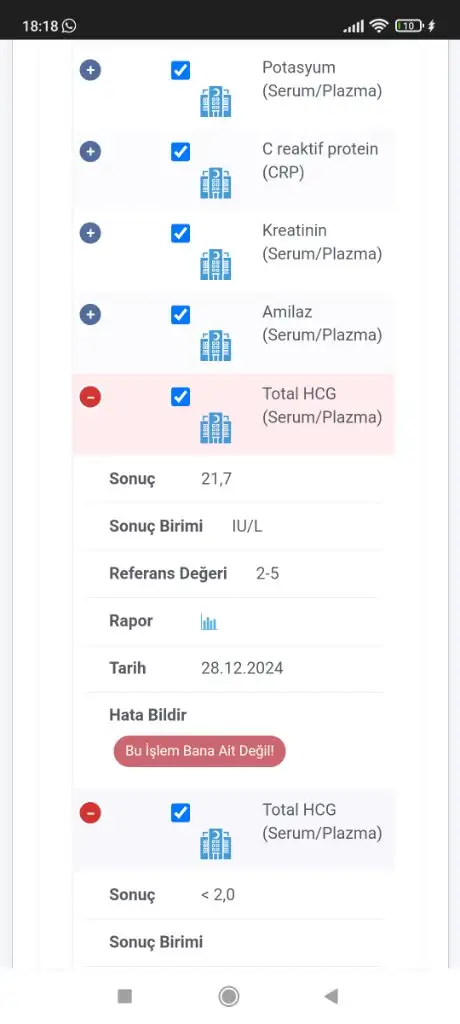 Anladim, dikkatinizi cektimi bilmiyorum 29 aralik tarihli hcg sonucunun hemen altinda bir sonuc daha var. Sizin lab sonuclarinizda bir hata var bana kalirsa