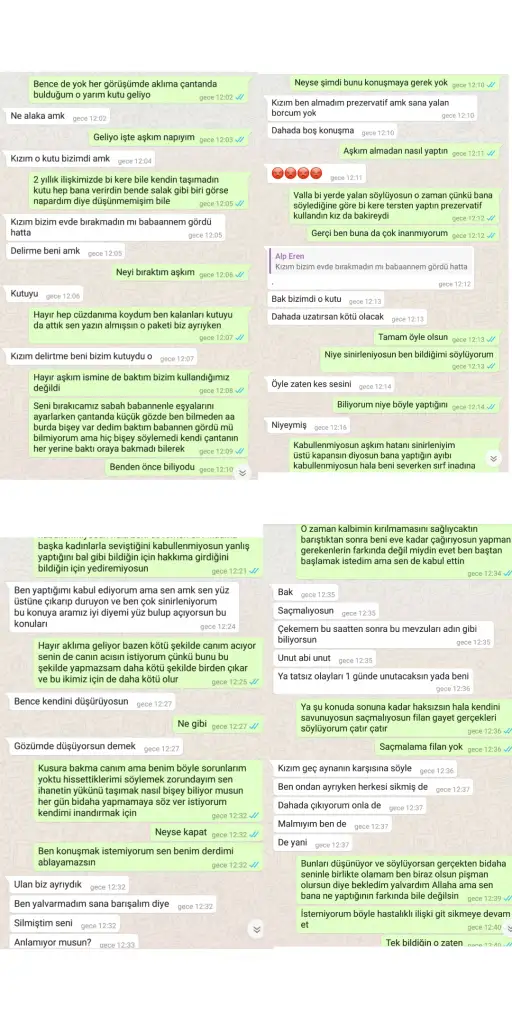 Kuzucum yıpranmışlığım 6 ay öncesinden başlıyor o aldatma mevzuları filan o zamandı sonra zaten normale döndük benim restlerimi görünce çekidüzen verdi.