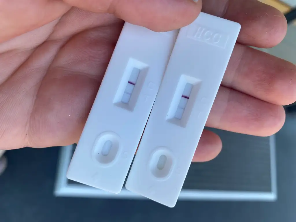 Simdi gene yaptm daha silik ama gozukuyor digerleri gibi acaba cok fazla tuvalete gittigim icinmibence bekleme onceki teztlerinde hic görünmüyordu suan cok net gorebiliyorum ve buraya yukleyince kalite dusuyor yani daha net göründüğünü var sayiyorum zaten 2 3 gun sonra tekrarla demistim gec dollenme ihtimali vardi bence oyle de oldu acilde bakiyorlar bence kan testini vermelesin ona gore doktor randevunu da ayarlarsin bekleme derim