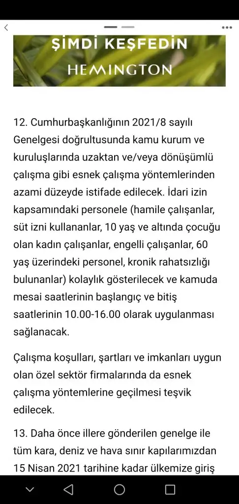 Ben hafta sonu yasaklarında sağlık personellerine pozitif ayrımcılık yapılması taraftarıyım açıkçası. Mesai+nöbet ile çalışanlar haftanın 5günü covid ile içiçeyken (psikolojik+fiziksel) hafta sonu en azından bir yürüme yürüyüş hava alma ayrıcalıklarının olması gerekirdi.Artık inancımı kaybettim ben evim şehir merkezinde şöyle balkondan Bi bakıyım diyorum hangi yaşdan ararsan dolu yaşlı orta yaşlı amcalar gruplar halinde sohbet ediyo Bi ara banklar yasaklanmıştı şu sıralar onlar da kalktı oturup sohbet etme fırsatları buldularizin kağıdını yada sağlık çalışanı olup yada adliyede memur vs bunun rahatlığı ile gezmeye bile gidenleri gördüm yasaklarda. iyimser olmaya çalışıyorum da cidden çok zor gibi geliyo bana