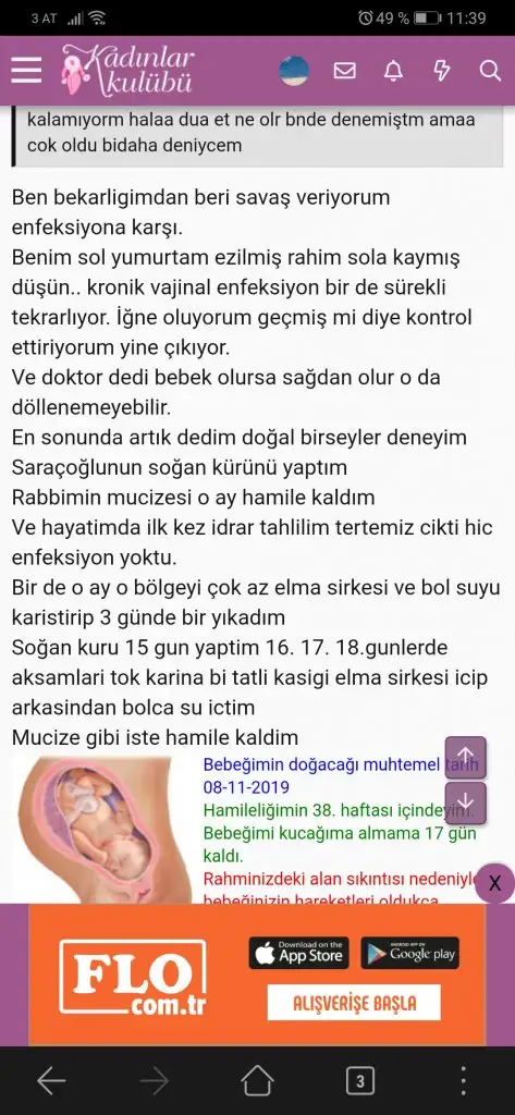 Akıntı illetinden doğumda problemli tüpümün alınması ile kurtuldum.