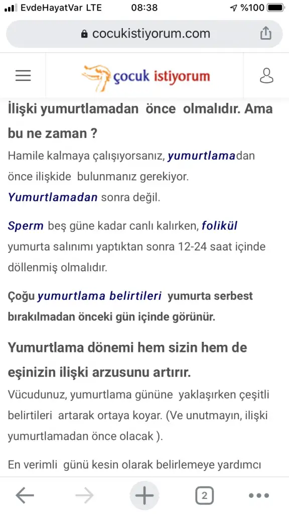 Kaç ay ovulasyon testi ile takip ettim tık diye gününü yakaladığım da çok oldu, Öyle üç gün diyorlar ya hah onu da yakaladigimiz günler oldu. Bebek ne zaman mı geldi tek ilişki olduğu zaman. Allah Ol dediği zaman yani...Ovulasyon testi ile takip ediyorum. Testi aldığım kişi test pik yapınca üstüste 3gün ilişki dedi. O yüzden söylemek durumundaydım yumurtlama olduğunu. Soğan kürü yapmıştım o kadar berbat tada rağmen içtim 15 gün. Hatta bal tarçın çörekotu yaparım adet olunca diyordum ama hevesim tamamen kaçtı. Bilmiyorum nolacak adete 2-3 gün var 2haftadır ilişki yok zaten.
