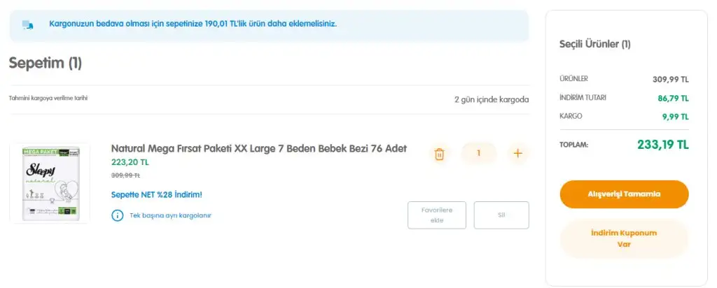 Bugünü bekliyordum bebek bezi indirimini. Gerçekten indirim var mı diye? Fakat sepete attığımda indirimli adı altında adet başına yansıyan fiyat normalden fazla. Yani indirim yok maaselef. Her zaman aldığım fiyattan fazla geliyor. Bilinsin istedim.