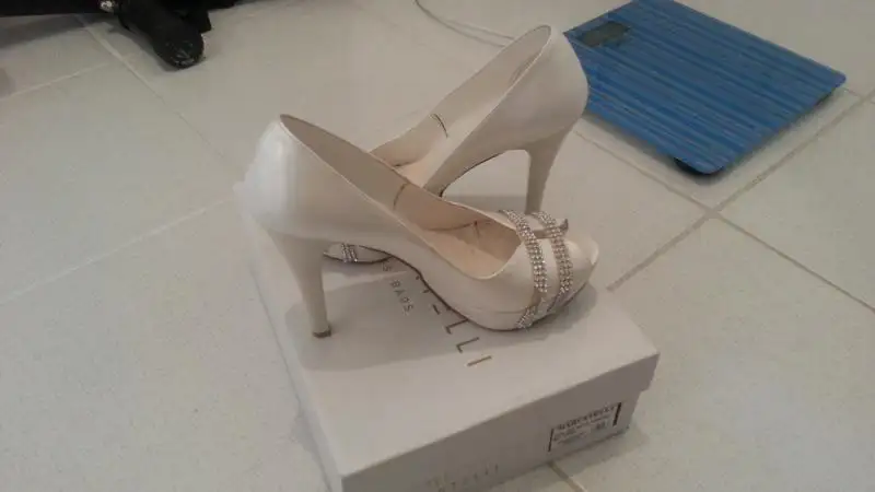 Marcatelli marka gelin ayakkabısı 1 defa giyildi 170 tl ye aldım tek sorunu ayakkabının bir eşinin taşlarının küçük bir kısmı düşmüş.ama çok göze batacak kadar değil.o ksımının fotoğraflarınıda ekledim.gelinlik altında da gözükmeyecektir zaten.Marcatelli nin sitesine bakabilirsiniz