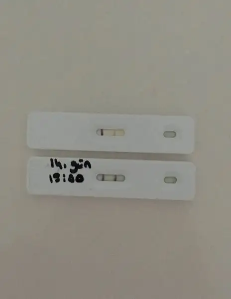 fotograf var ama yukleyemiyorm bir turlu ilk 2 gun cok kirmiziydi diger gunler gittikce siliklesti yavas yavas ama 3 gundur falan hep ayni siliklesme yok ama koyu degil senin testinden biraz daha silik cizgi var 3 gundur ayni.