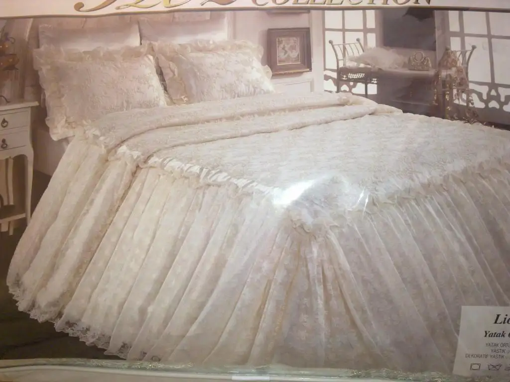 böyle bir şey olabilirdi, gelin gibi tüllü pullu şeyler hiç kullanışlı değil ya. ne 10 saniyesine kadar uzun sürüyor, sonuçta iki kişilik yatak bu :44: neyse caydırmaya çalışıyorum ben de ya. daha sade şeyler bakabilirsiniz süslünün yanında. yine saten alıyorsanız alın. ama yıkamasını sermesini ütüsünü yastığını ne bilim her şeyini düşünün yani. benimki çok spor bir yatak örtüsü, onu bile kullanamıyorum