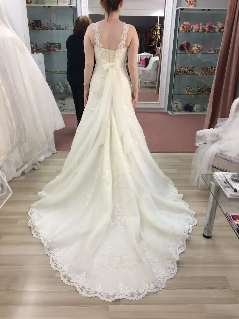 Siz gelinliği eşinize göre uydurduğunuz için özelliği kalmamış ki. Onu kapat, bunu çek, kol ekle bilmem ne. Yakası çok yukarıda olmuş, daha aşağıda olmalı. Karpuz kolu da beğenemedim hiç. Aşağıdaki model gibi dar ve uzun kol olsa daha iyi. İçinize nasıl siniyorsa öyle yaptırın, daha vakit varmış.