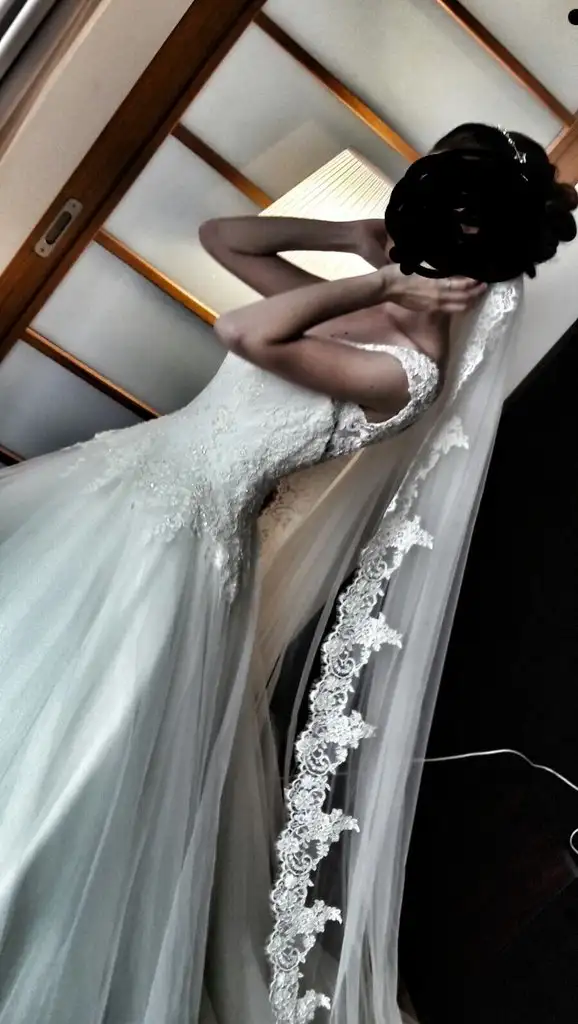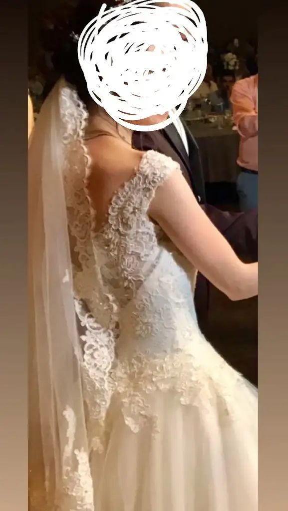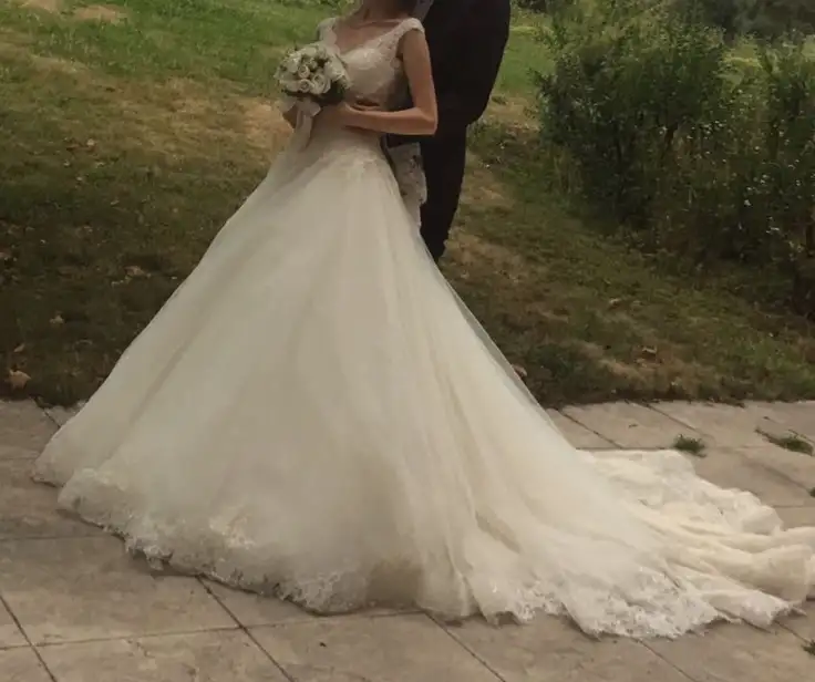 34 beden kalın askılı a kesim fransız dantelli gelinliğim fotoğraflarını da koyacağım yüzümü kapatarak.