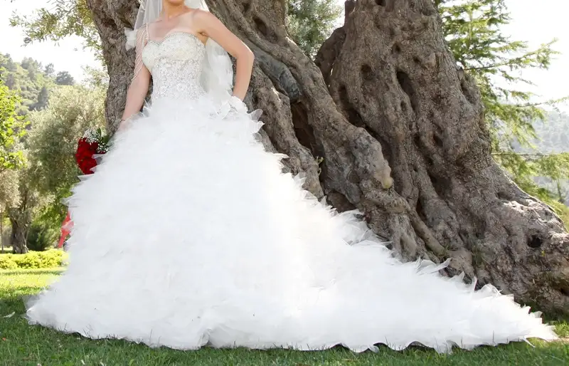 arkadaşlar gelinliğimi satıyorum. Sadece bir kez giydim herhangi bir hasarı yoktur.. 36-38 bedendir. Gelinliğim tek parçadır üst kısmı swarovski taşlarla süslü olmakla birlikte arka kısmı ip bağcıklı, kuyruğu uzundur. İp bağcığının altında portatif bir ek var isterseniz bnm gibi kapalı olarak kullanabilirsiniz, isterseniz de bu eki çıkararak sırt dekoltesi verebilirsiniz.