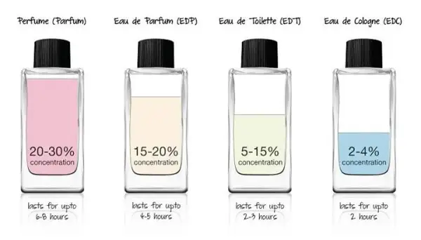 Eau De Parfüm (EDP), Eau De Toilette (EDT) ve Eau De Cologne, aslında parfümün kendisini oluşturan esansın yoğunluğuna göre yapılmış bir ayrım. Tabii ki esansın yoğunluğu da kokunun kalıcılığından etkisine kadar bir çok şeyi belirliyor. Bu nedenle parfüm seçerken, kokusu kadar, kullanacağımız mevsime, günün zamanına ve yere göre de kararımızı oluşturmalıyız.