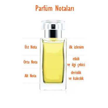 Üst notalar; Uygulamadan sonraki ilk dakikalarda hissetiginiz koku yönü. Daha hizli buharlasan meyve tarzi kokulardir.