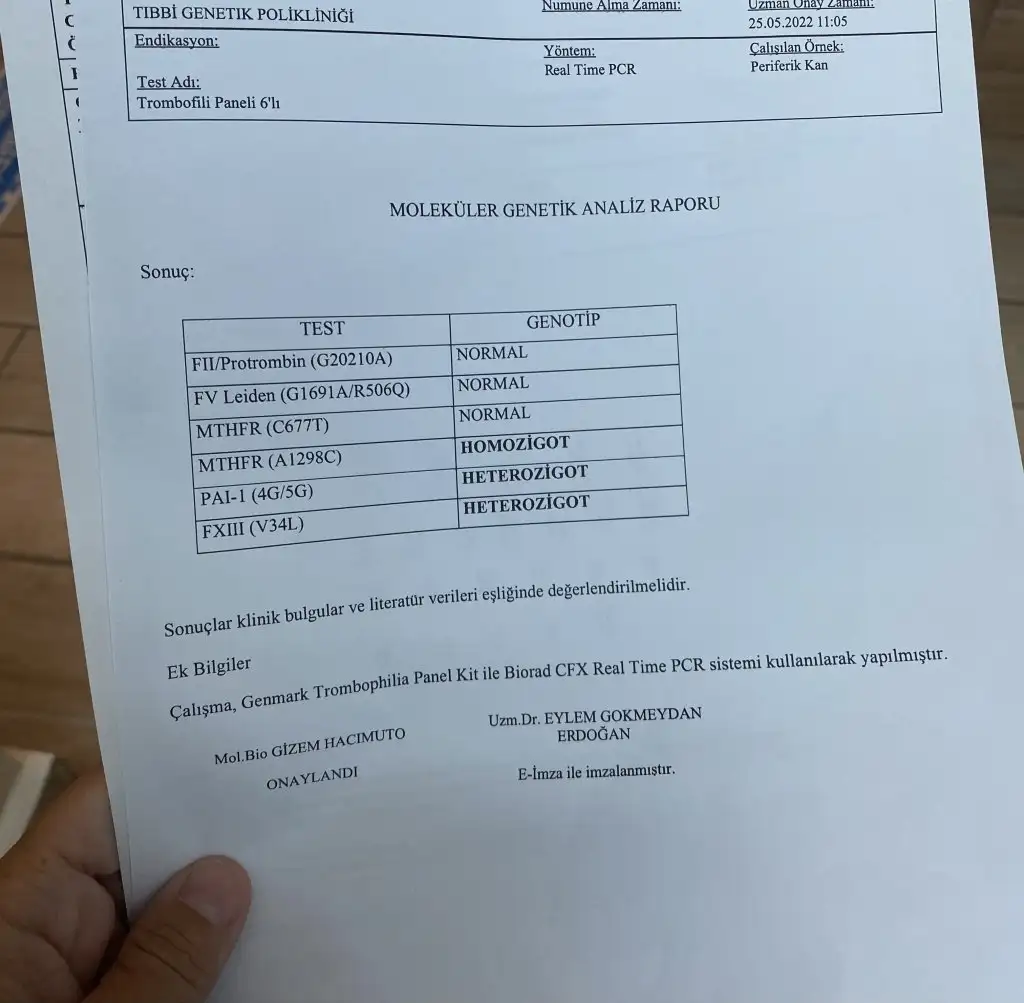 Merhaba 4 dusuk sonrasi genetik test yaptirdik benim genetik kodlar normal
