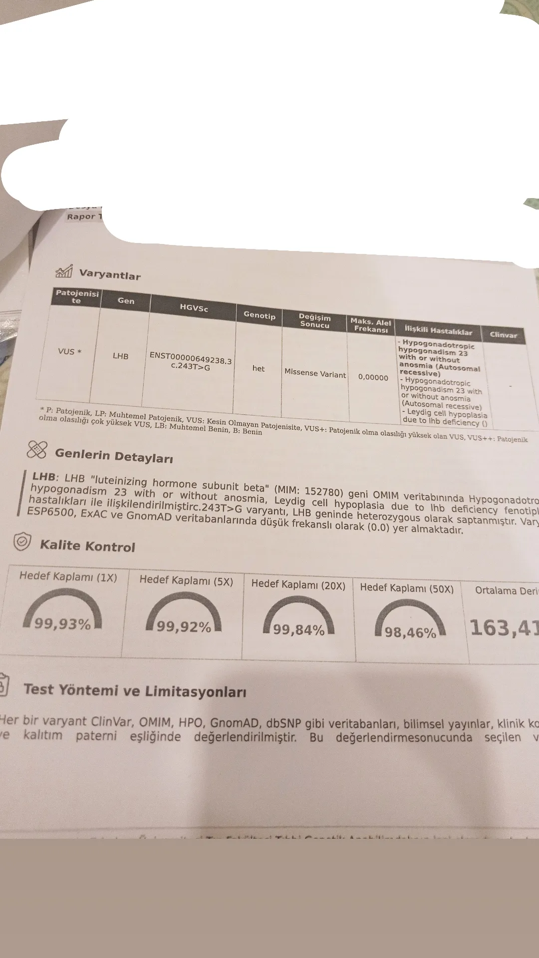 Hayırlı geceler hanımlar. 3 yıldır evliyim gebelik olmadı, kendim çok doktora gittim sorun yok denildi, eşimde sperm sayısının düşük olduğu ama yine de tüp bebek öncesi genetik test yapalım denildi. Bende sorun yok denilirken genetik sonucumda LHB eksikliğine bağlı bir sorun görünüyor anlayamadım, eşimin normal gelmiş