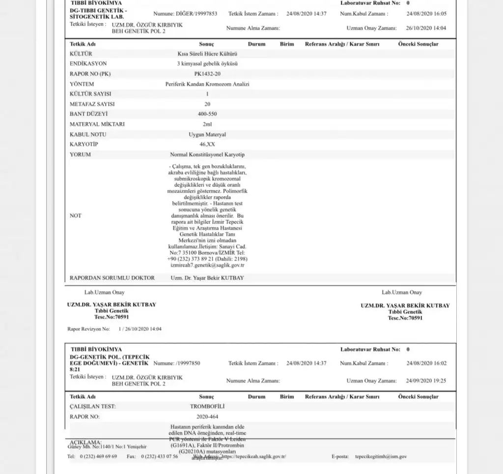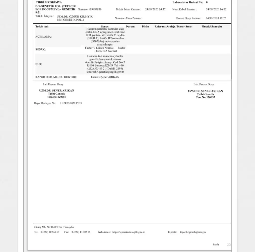 3 kimyasaldan sonra genetik testler verdik bi bakar mısıjız kan pıhtılaşması yada başka bir sorun var mı doktora yazdım beklemedeyim