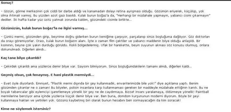 saçma sapan dediğiniz eylemler insanın yalnızca insan olduğu gerçeğinden yola çıkarak doğuştan sahip olduğu temel hak ve özgürlükler çerçevesinde gerçekleşiyordu. anayasada tanınmış bir hakkı bile yok saymak mümkün mü? insanlar hak arayamaz mı, insanlar demokratik olduğu söylenen bir toplumda değerlerine sahip çıkamaz mı, insanlar eline silah almadan şiddeti dışlar eylemler yapamaz mı? peki bir insan ekmek almaya da mı gitmemeli? kafasına biber gazı kapsülü yiyeceğini hesap ederek dışarı mı çıkmamalı? bunca haksızlık karşısında insanlar ne yapmalı? sokaklara dökülmek dışında ne yaptılar? elinde palalarla eylemci kovalayanların yaşadığı bir toplumda zarar görmemek için sinmeli, sessiz kalmalı, hiçbir şey olmamış gibi mi yaşamalı?