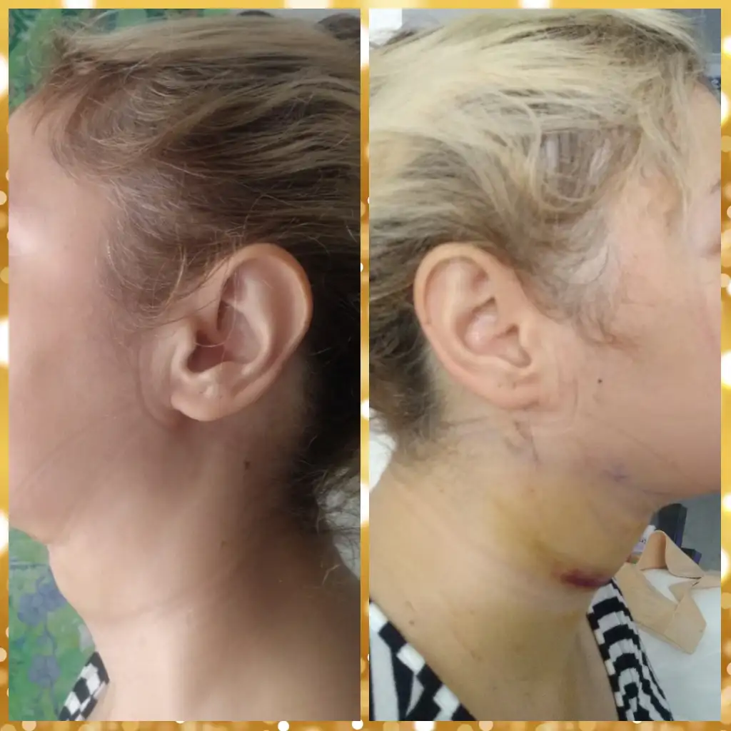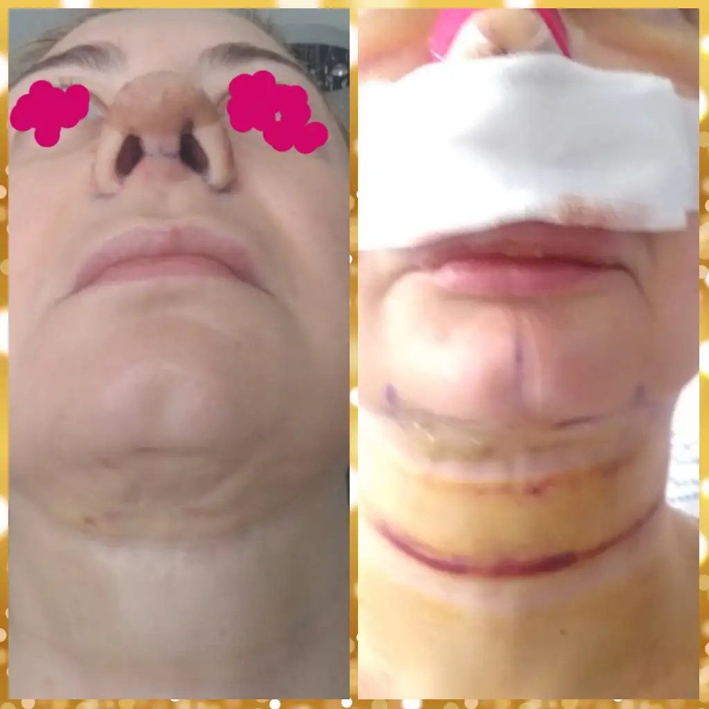 Açıkçası ben çok memnun değilim şuan. İşlem işlem sonrası evet çok güzel geçti. Ama sağ tarafımdan yağ çekilmemiş gibi. Birde ben kiloluyum öyle başımı eğdiğimde sizin gibi olmuyorum maalesef boynum gıdı gibi çıkıyor yanaklarımda da sarkma başlamıştı 2 senedir zaten. Ne bileyim çok istediğim gibi olmadı..beni ancak yüz germe kurtarır ama o da çok pahalı bir işlem 😒 Sizin gibi durmuyor bende. Sol tarafım çok güzel alınmış sağ tarafım çok alınmamış gibi. İçerideki topakları söz konusu bile etmiyorum artık 🤷‍♀️ 1 ay sonra gidebilirsem gideceğim kontrole bakalım