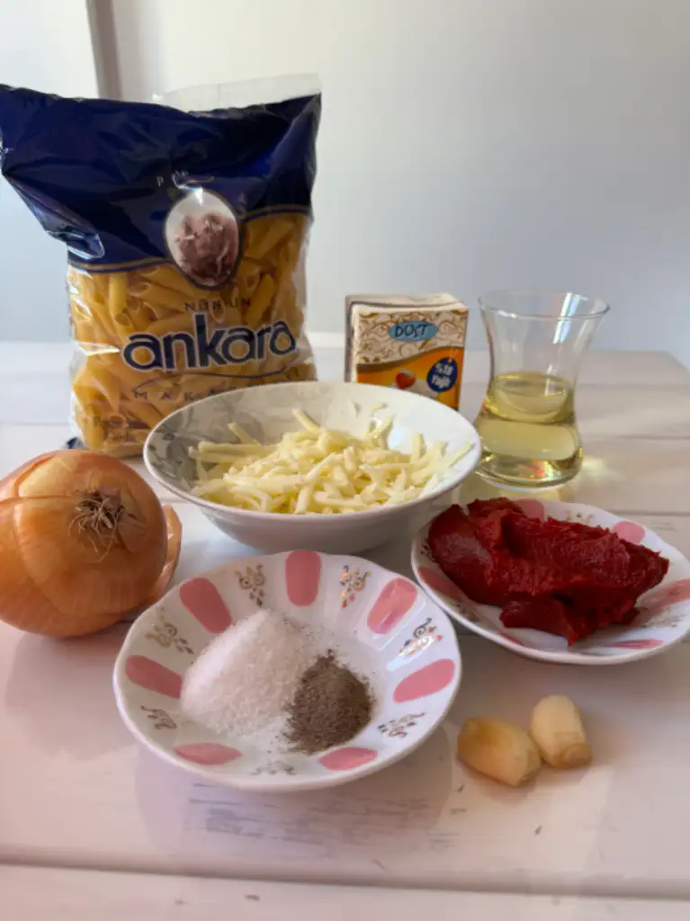 Haşladığımız makarnanın suyundan sosumuz için 1 su bardağı kadar ayıralım.