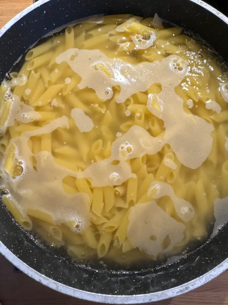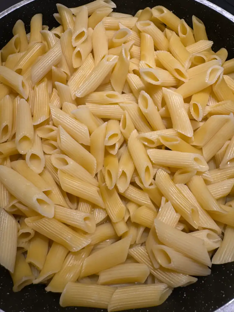 Su kaynamaya başladığında penne makarnamızı tencereye boşaltalım. Tuzunu ekleyerek 10-11 dakika kadar haşlanmaya bırakalım.