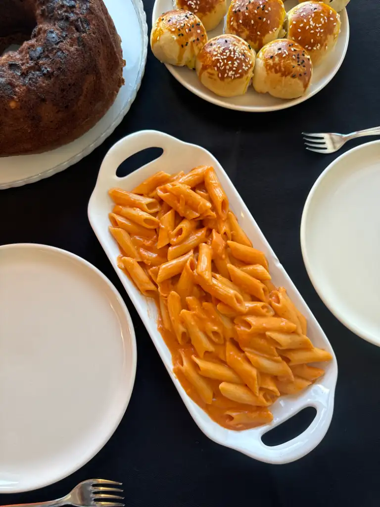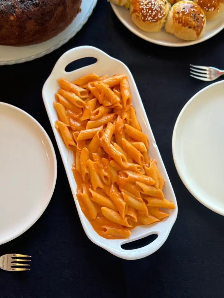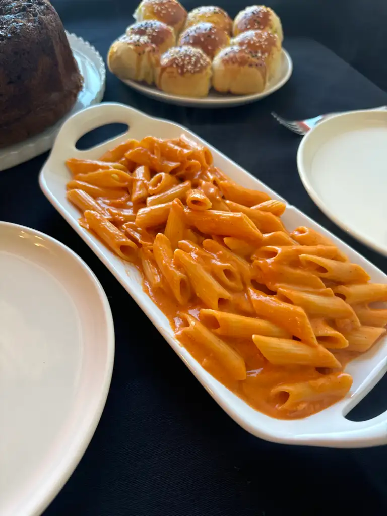 Sosunu güzelce çeken Gigi Hadid makarnası servise hazır.