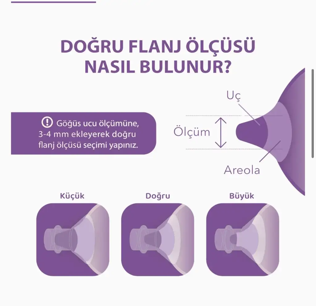insallah hepimizin cocuklarına şifa olsun:) google’ya “how to choose flange size” yazarsanız nasıl ölcüleceği ve doğru sağım için şekilleri görebilirsiniz. Önce meme ucu ölçülüyor ( nipple size) ve buna göre uygun pompa baslık boyu belirleniyor ( flange size) . Tüm klasik pompalar 24-25 mm satılır, size kücük gelseydi çok yaranız olurdu aslında. Meme ucu tam sığmalı pompa ucuna ve cok az 1 mm sağdan ve soldan boşluk olmalı, youtube’de de birsürü video var tarif eden.Gözlerim yaşlı çooook tşkr ederim verdiğin bilgiler için bol sütlü günlerin olsun sütün bebeğine şifa olsun inşallah.