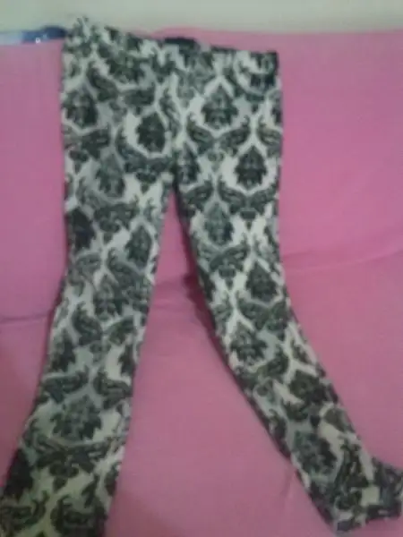 krem siyah desenli arkası cepli tayt pantolon 1 kere giyildi l beden 11 lira