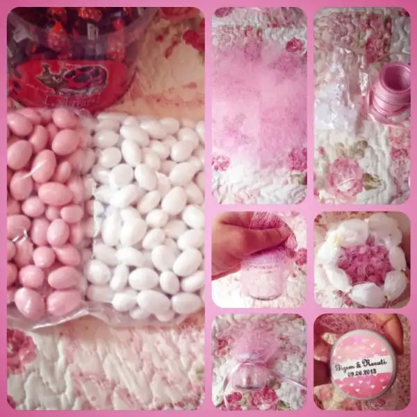 cok seker olmuş ya::) bende yapmak istiyorum düğünümde nikah sekeri olarak sen nerde oturuyosun canım ? ben izmirdeyim kemeraltından belki bulabilirm anca bunları heralde seker tül kurdele kolayda o küçük kavanoz ve üstüne yapıştırdığın kağıtları ayarlamak biraz zor