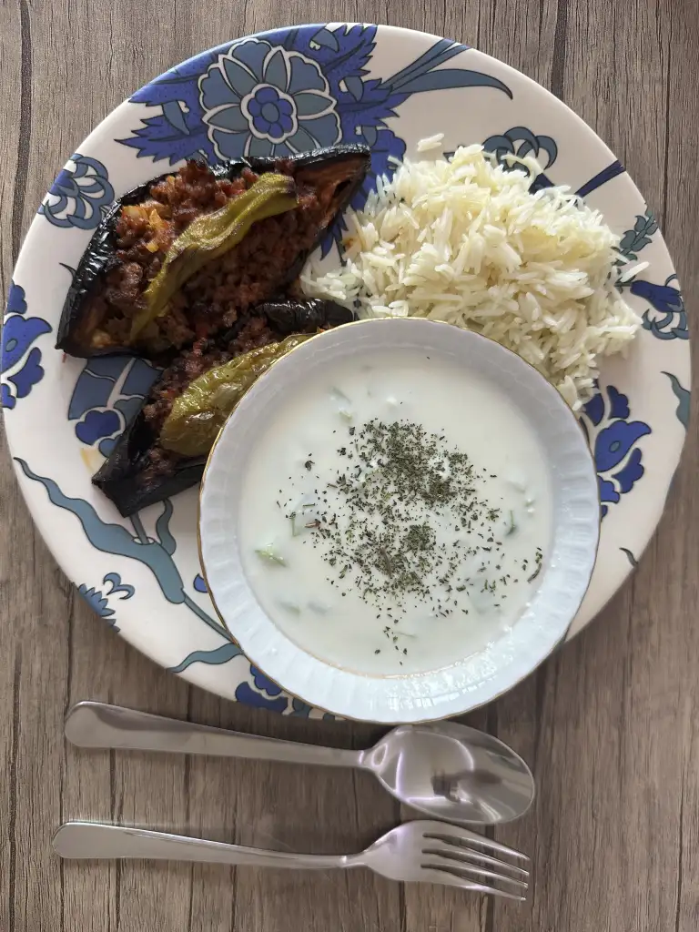 Akşam: yoğurtlu köz biber, dünkü çorbadan 1 kase, 3 köfte pirzola