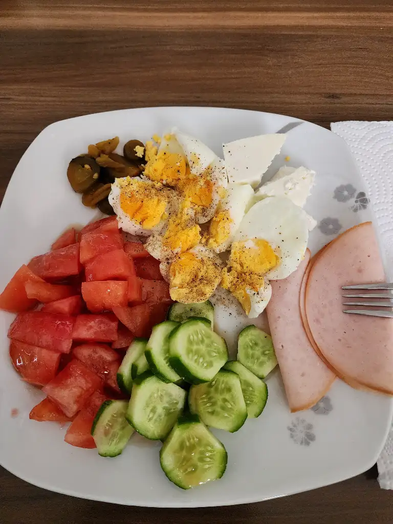 Herkese selam, sabah yine 2 yumurta, az peynir, zeytin, vasa, bol yeşillik