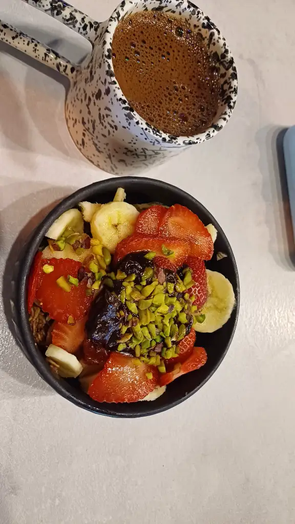 Arada yeşil çay, fıstık. 1 saat sonra sade quark