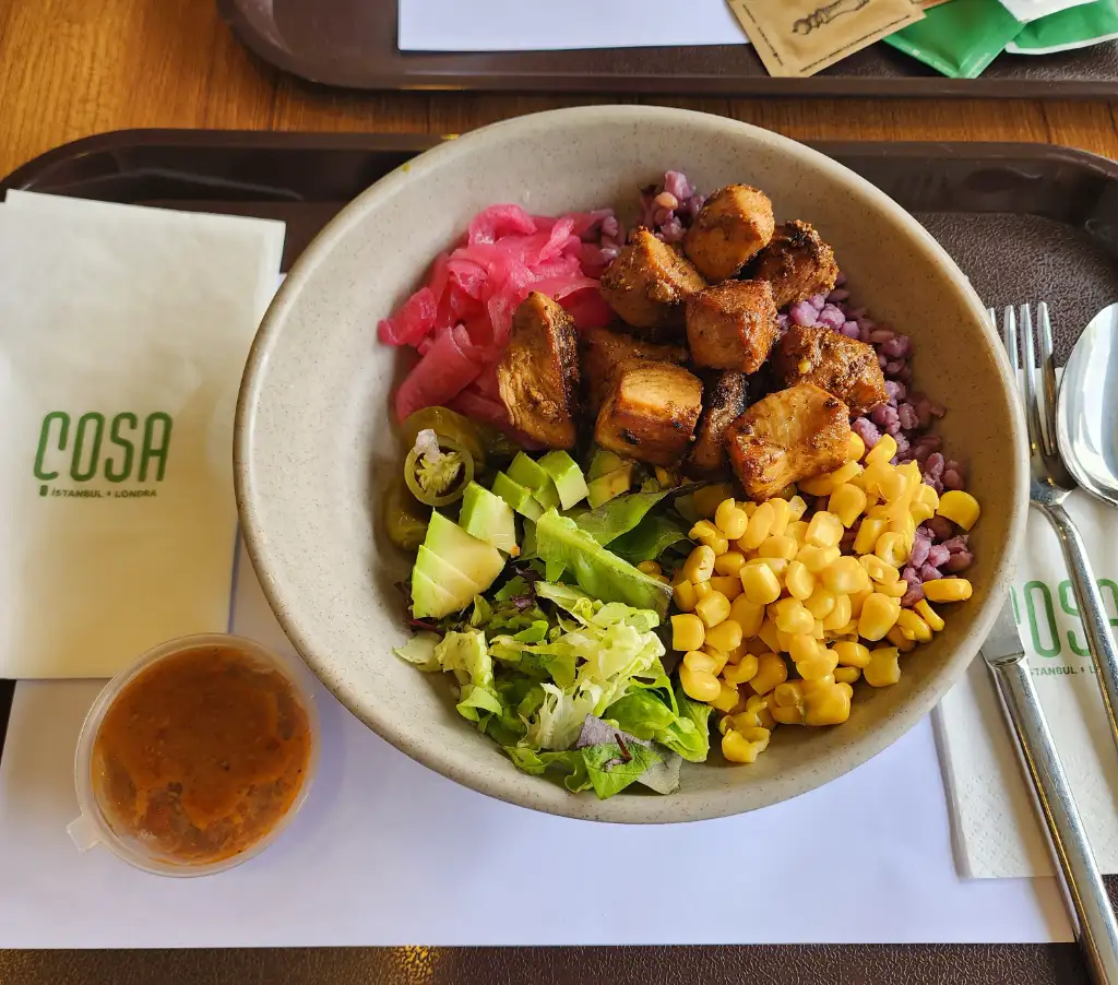 Akşam: 2 kepçe domates çorbası, tavuklu salata